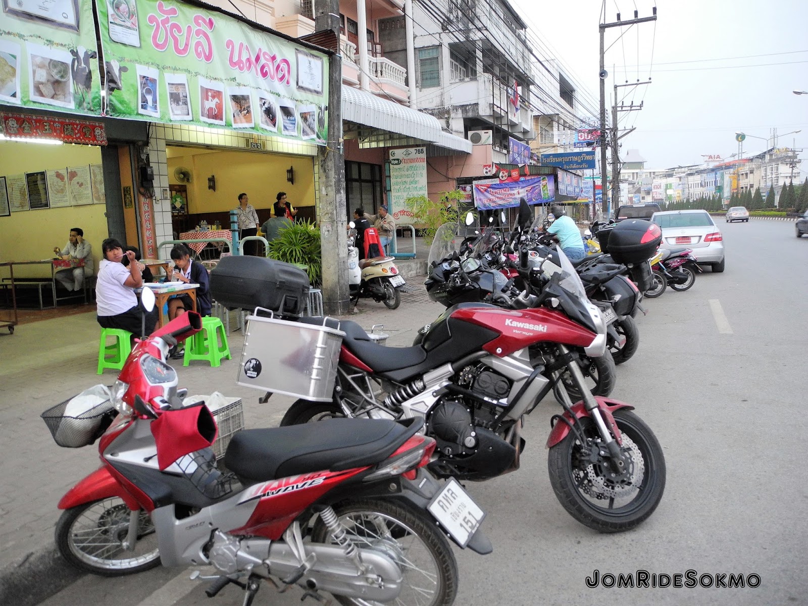 Dalam 12:30 PM, apabila tiba di bandar Mae Sai, kami terus menuju ke kompleks Pusat Imigresen dan Kawalan Sempadan Thailand. Kami tidak akan membawa motor menyeberangi sempadan, sebaliknya akan memarkir motor berdekatan Pusat Kawalan Sempadan Thailand. Terdapat banyak lot-lot bawah bangunan sepanjang Jalan Sailomjoy bersebelahan Thai-Myanmar Friendship Bridge dijadikan parkir berbayar untuk kenderaan termasuk untuk motor untuk lebih selamat.